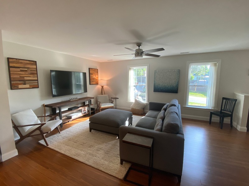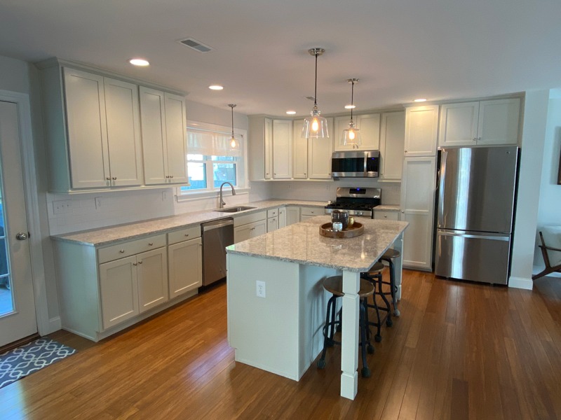 This custom Colonial-style home combines traditional charm with modern comfort, showcasing a hip roof porch, beautifully crafted wood floors, and a contemporary kitchen design.
