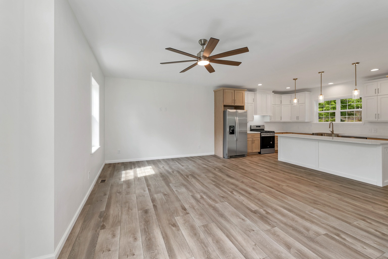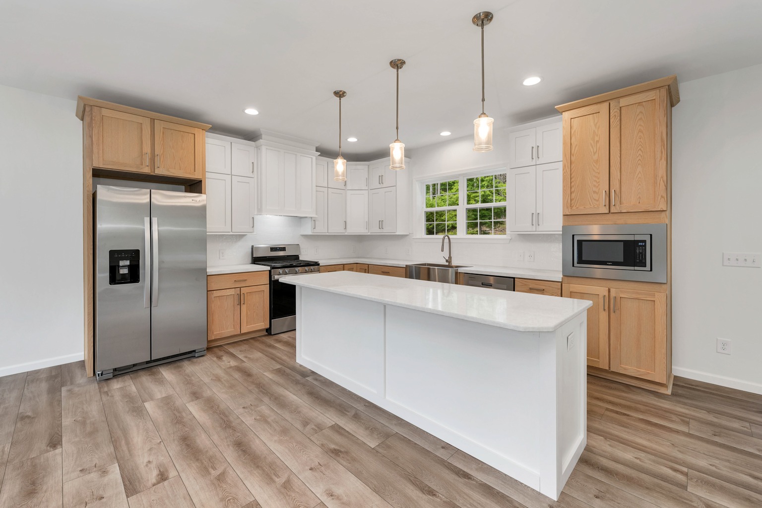 This Colonial-style home combines timeless architecture with modern touches, offering custom siding options, a beautifully designed kitchen, a convenient two-car garage, and a generous back patio perfect for outdoor living.